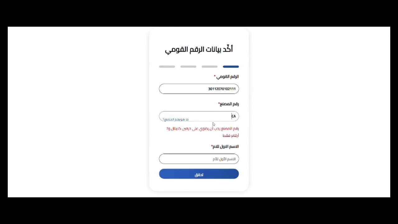 التحقق من البيانات الأساسية: يبدأ المستأجر بإدخال الرقم القومي ورقم الهاتف المسجل في قاعدة بيانات الجهات الحكومية للتأكد من صحة المعلومات الأساسية.
